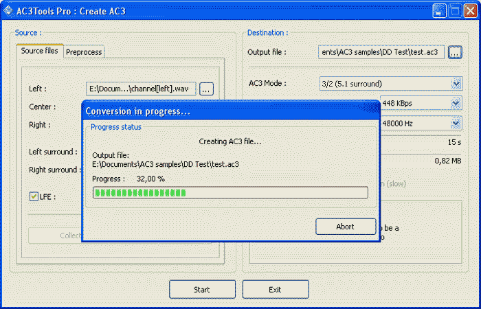 Erzeugen (encoden) der AC3-Ausgabedatei