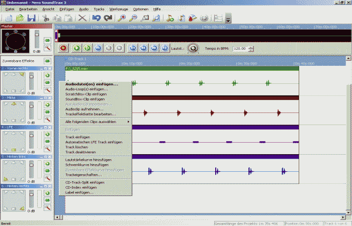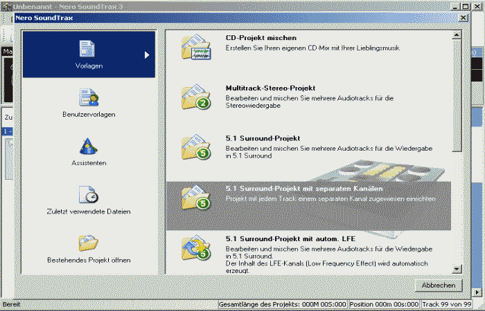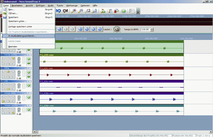 Mono-Wave der Kanäle zu Mehrkanal-5.1-Wave konvertieren mit Ahead Nero Soundtrax (Payware)