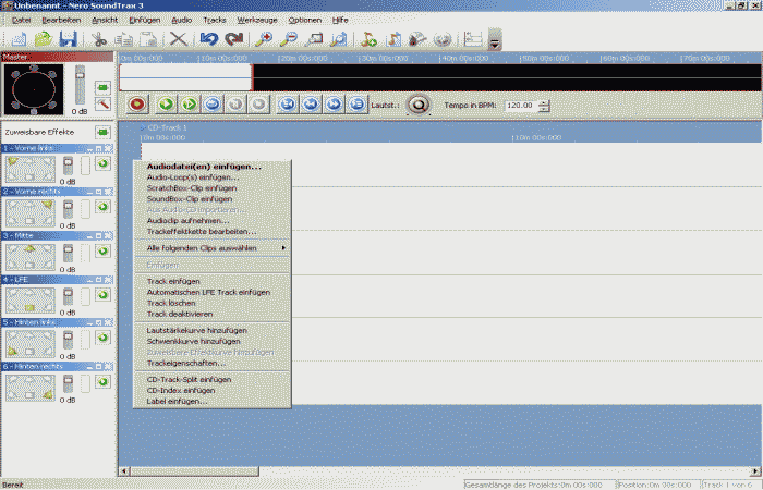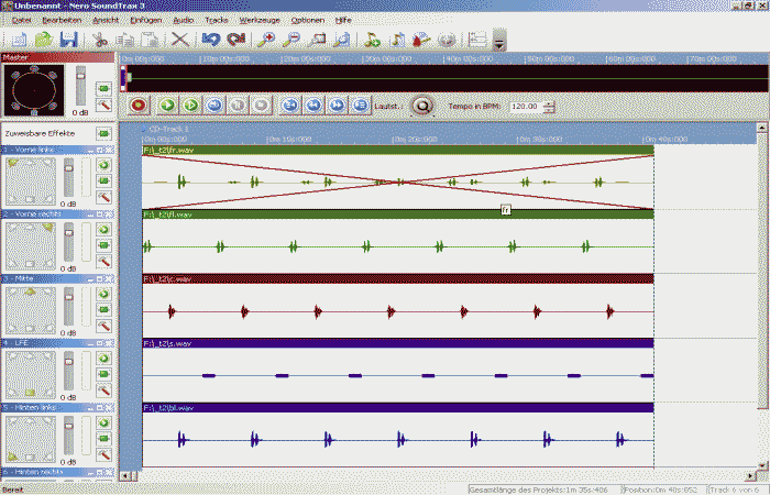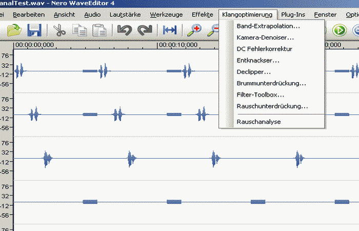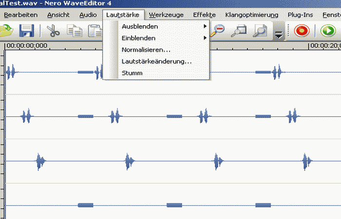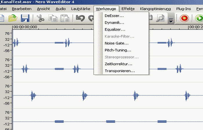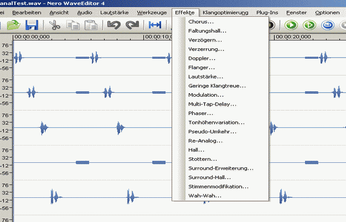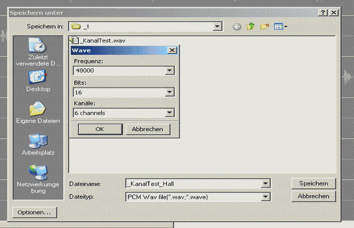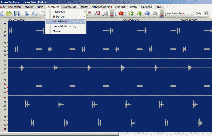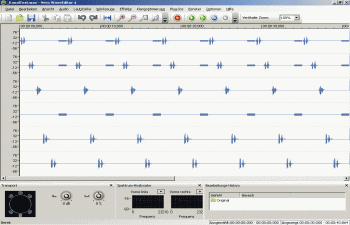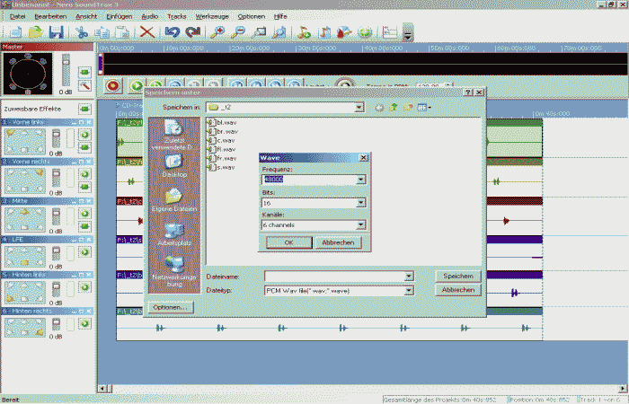 Die Verarbeitung einer erzeugten Mehrkanal-Wave sollte mit Ahead Nero Waveeditor erfolgen,