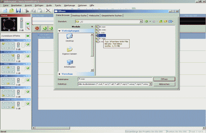 Soundtrax für 5.1-Projekt mit getrennten Kanälen öffnen