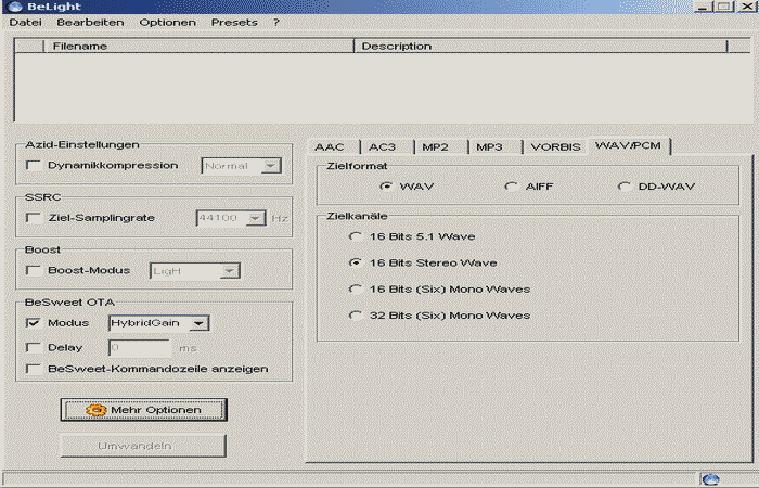 AC3 5.1 zu 5.1-Wave (Mehrkanal-Wave) konvertieren per BeSweetGUI (Freeware)