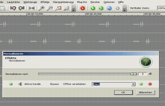 Die Datei lässt sich für alle Kanäle synchron normalisieren.