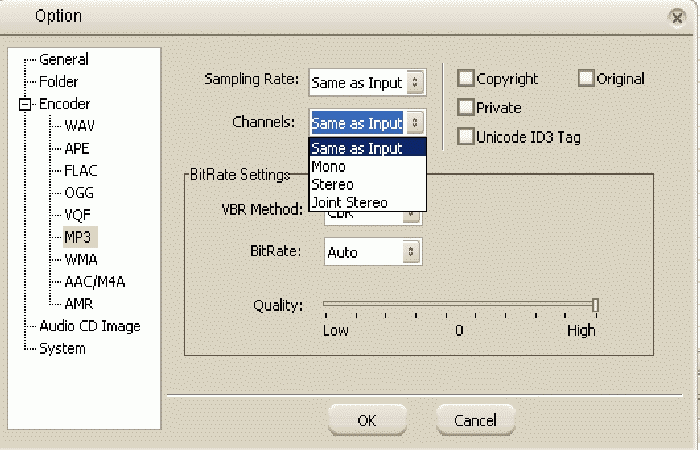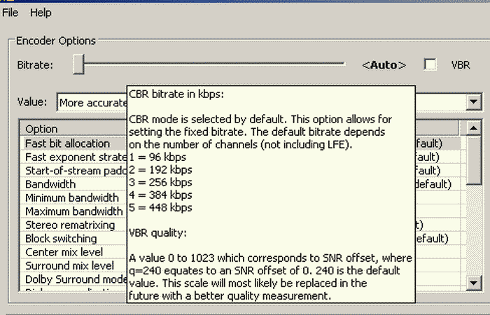 Bitrate der AC3-Ausgabedatei angeben - beispielhaft automatische Auswahl