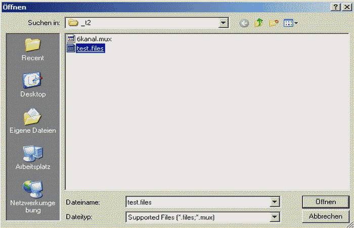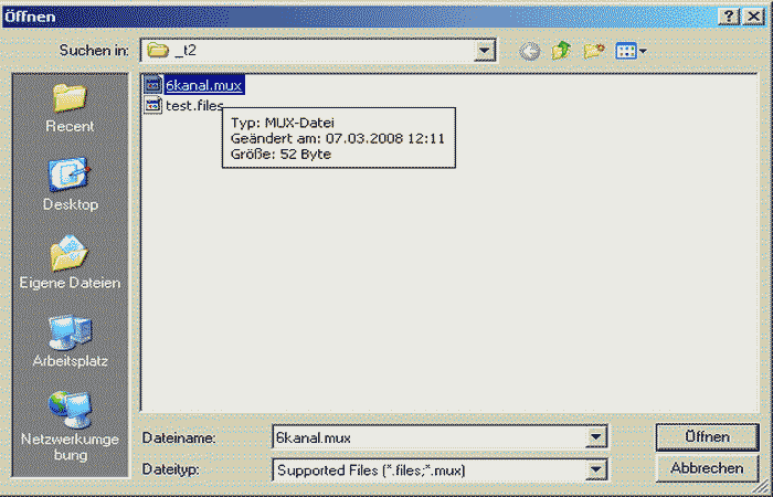 MUX-Datei öffnen, die folgenden Aufbau hat: