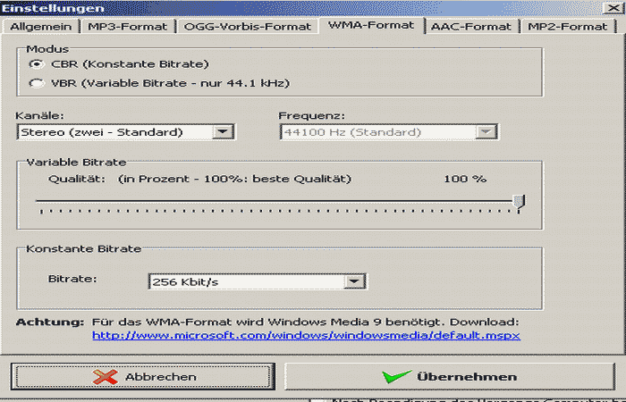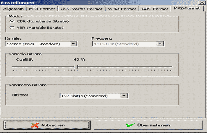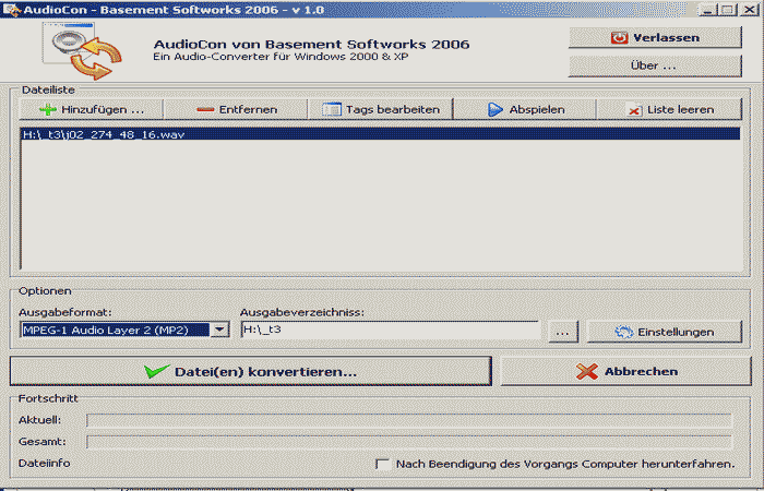 Beispiel: Wave-Datei nach MP2 konvertieren