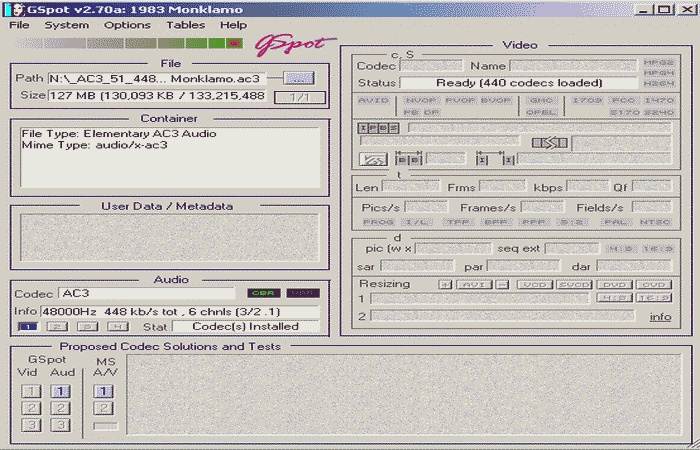 Eine der fünf AC3 5.1-Quelldateien und ihr Format