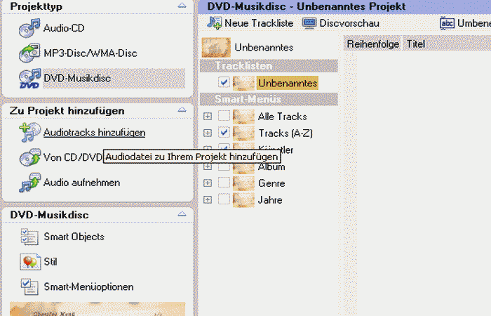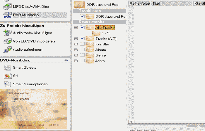 Audio-DVD mit Menü erzeugen per Audio DVD Creator (Payware)