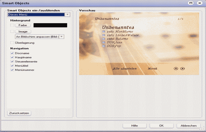 Layout der DVD per Smart-Menü