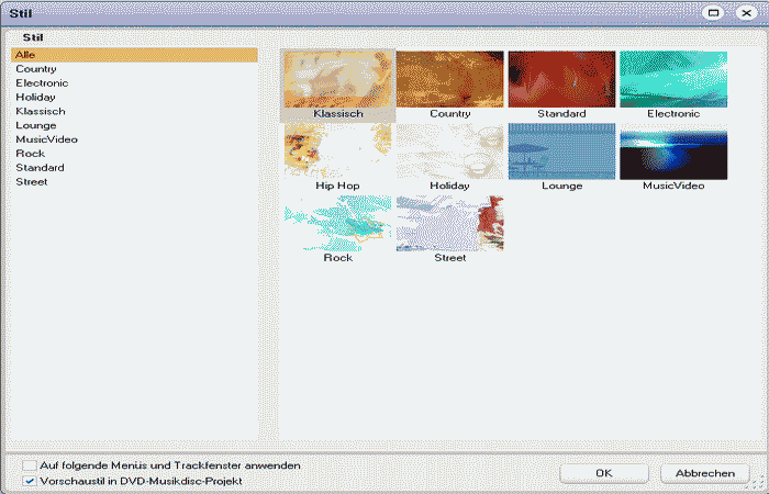 Layout der DVD per Stil