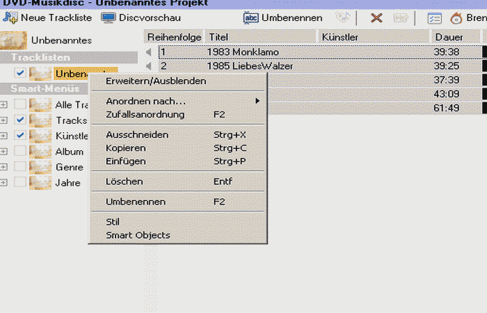 Layout "Tracklisten" im DVD-Menü