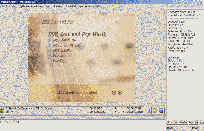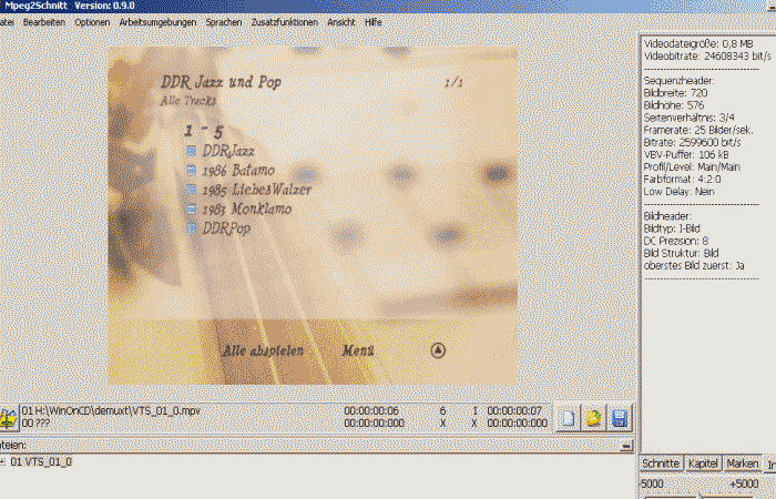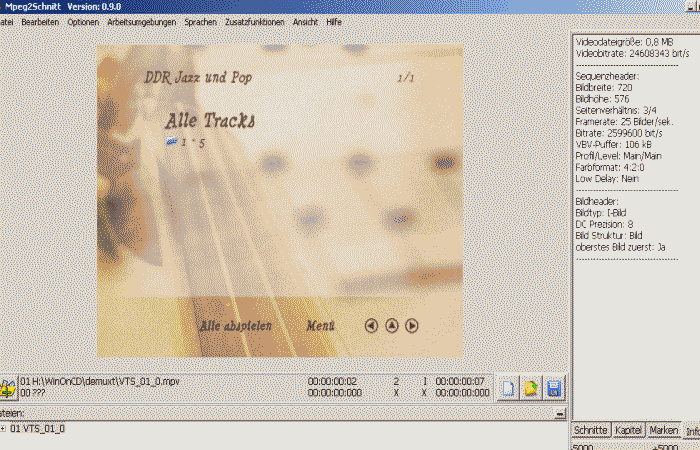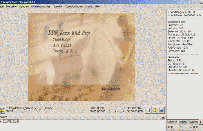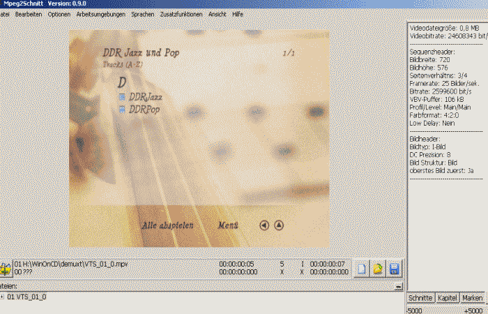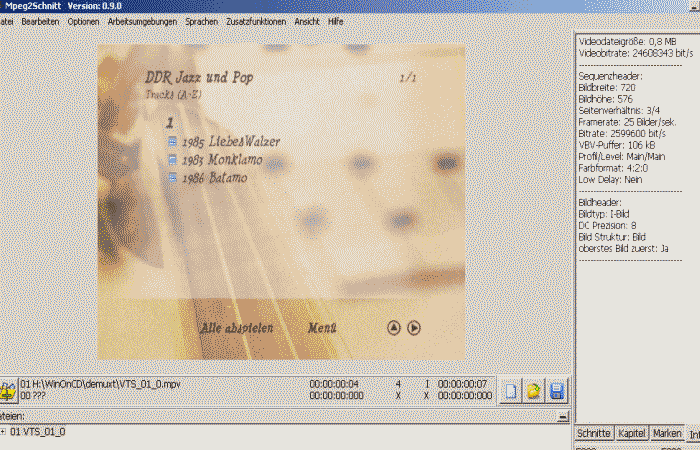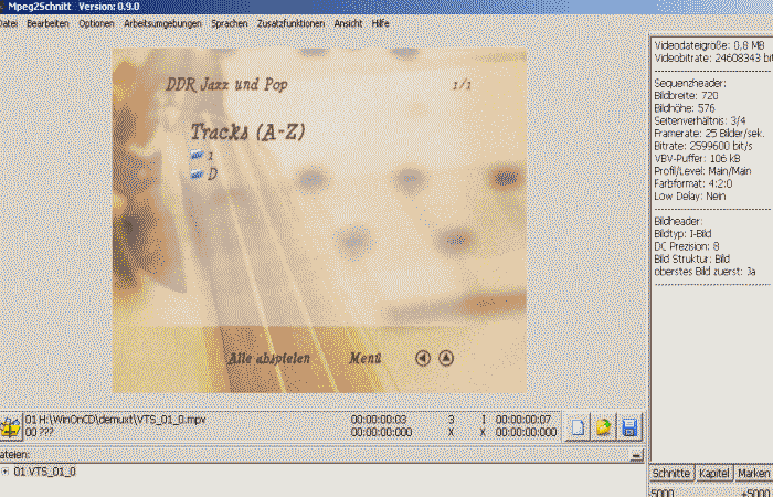 Nach dem Demux der VOB-Dateien - mpv des Menüs