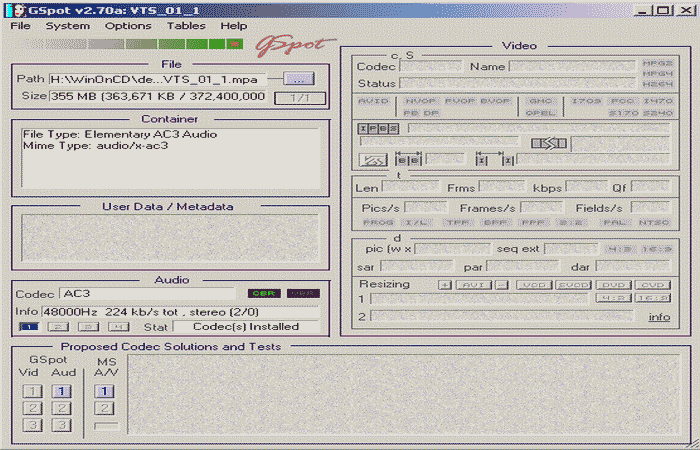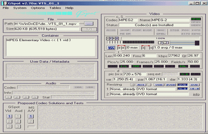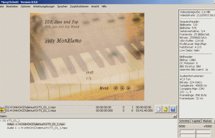 Nach dem Demux der VOB-Dateien - Formatangaben zu Audio und Video