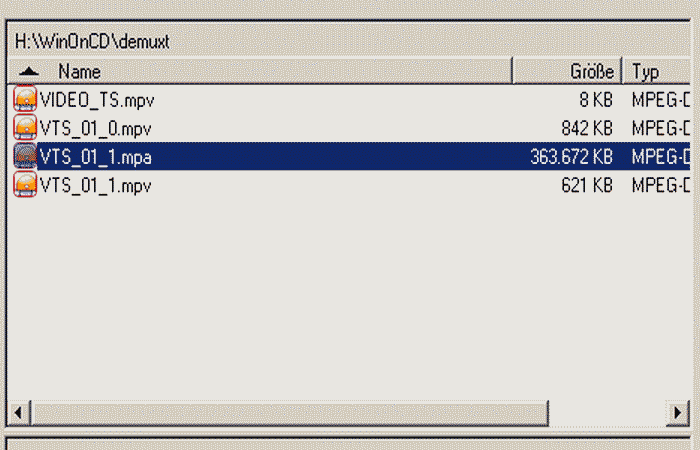 Nach dem Demux der VOB-Dateien - Audio-Datei der DVD