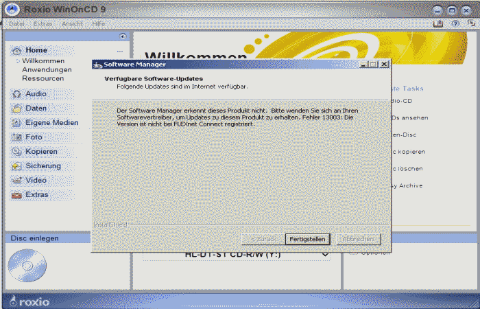 Roxio WinOnCD 9 Vollversion - fehlgeschlagenes Update (aktiviert in WinOnCD)