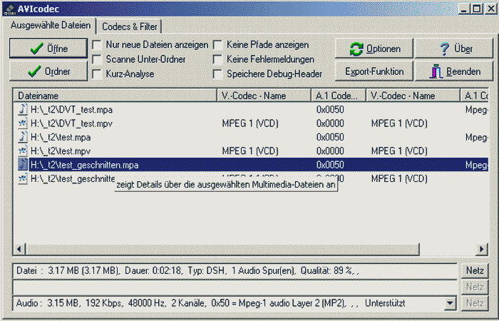 Audiodaten importieren: Alle mpa-Dateien markieren