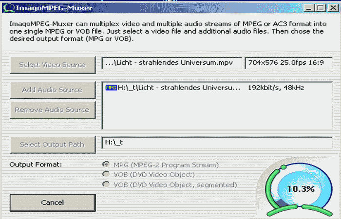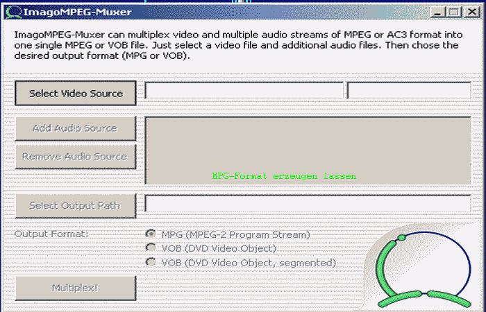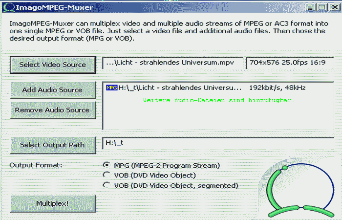 Imago MPEG Muxer (Freeware) - gemuxte Videodaten verknüpfen zu mpg oder VOB