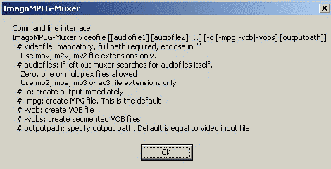 Kommandozeilen-Parameter von Imago MPEG Muxer