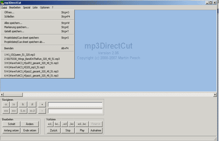 Übersicht zu mp3DirectCut