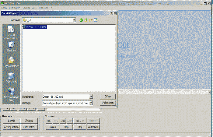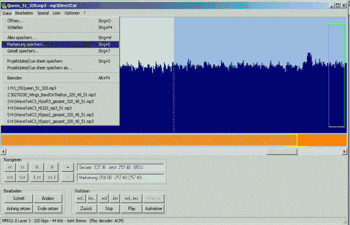 mp3DirectCut (Freeware) - MP3 verlustlos schneiden (auch Fraunhofer 5.1-MP3)