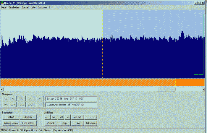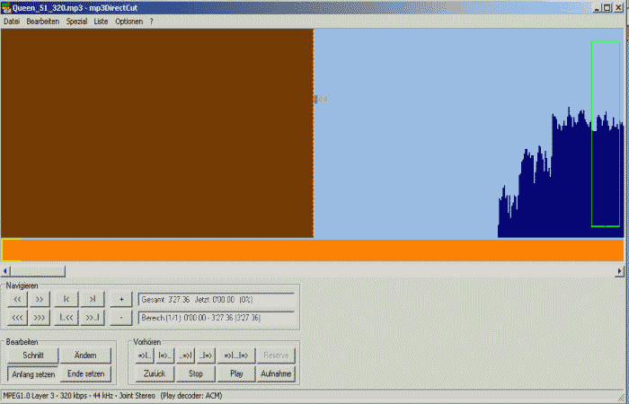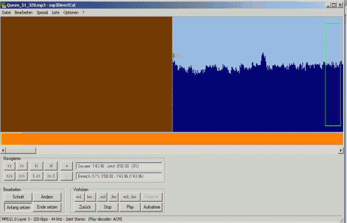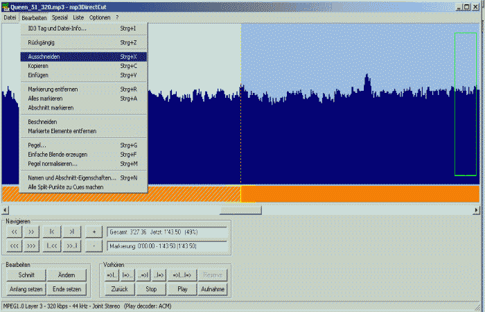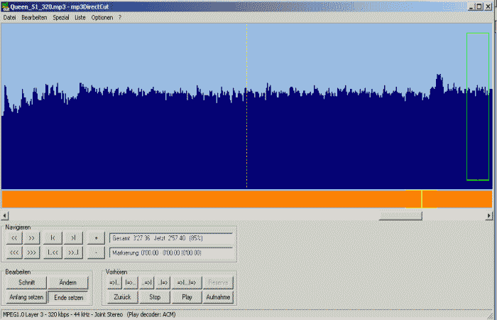 Der herauszuschneidene Teil der MP3 ist markiert