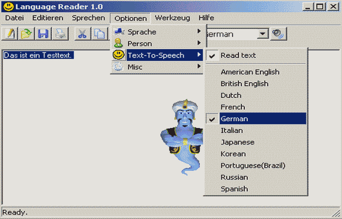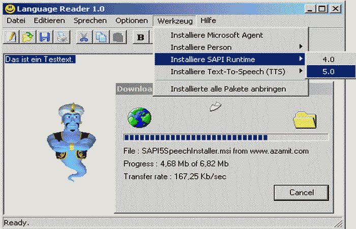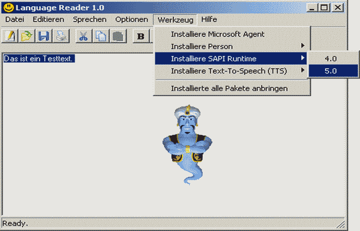 Language Reader - Editor mit Sprachausgabe und Komponenten-Download