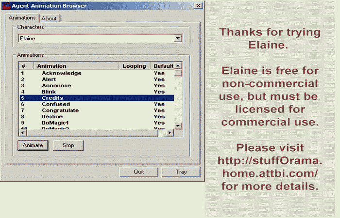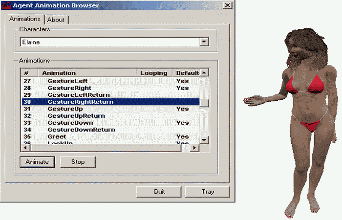 Agent Animation Browser - Charaktere (Agenten) und deren Eigenschaften testen