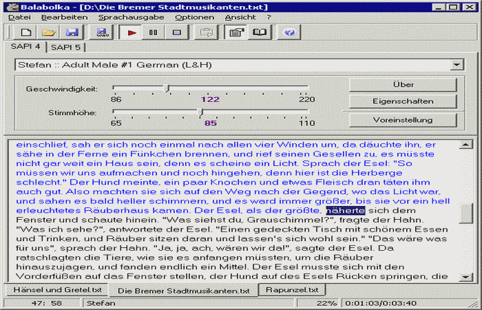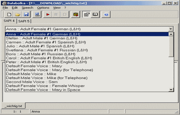 Balabolka - Editor mit als Wave speicherbarer Sprachausgabe (SAPI 4 und 5)