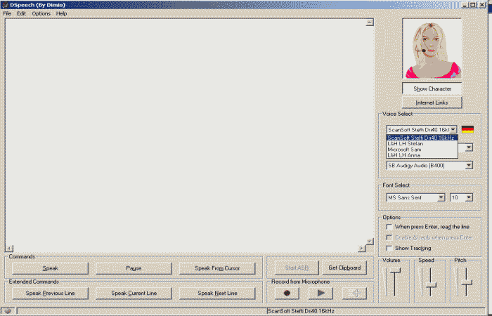 DSpeech - Editor mit als Wave und per Mikrofon speicherbarer Sprachausgabe (SAPI 4 und 5)