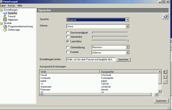 Mein Freund - Sprachausgabe u.a. für Uhr, Windows- und Programmstarts (SAPI 4)