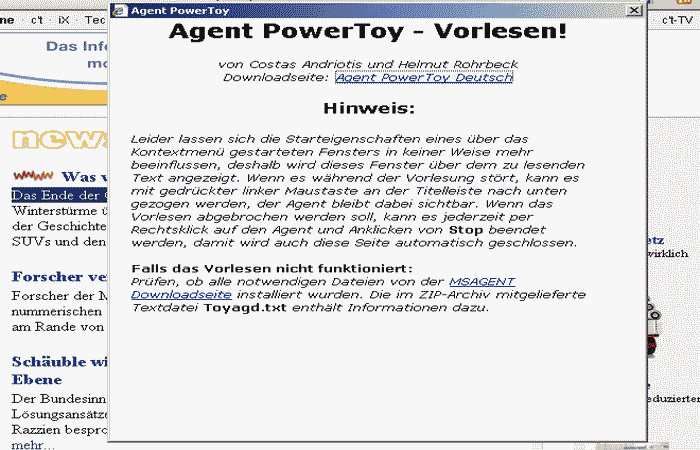 Vorlesen im Internet Explorer per Agent Power Toy (SAPI 5)