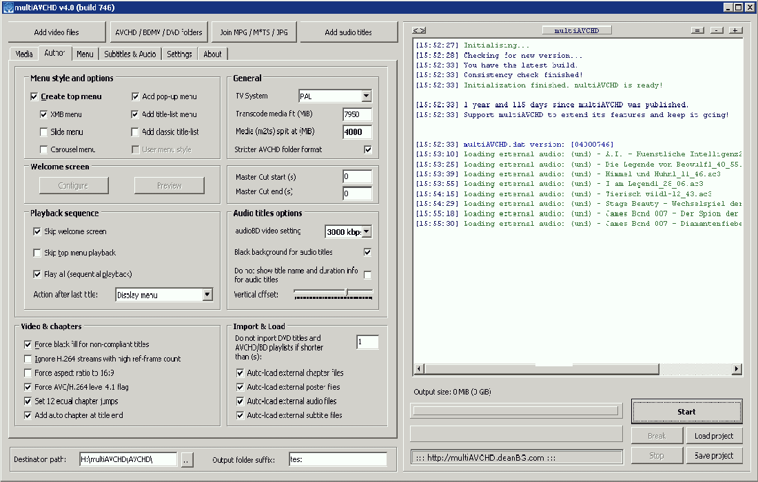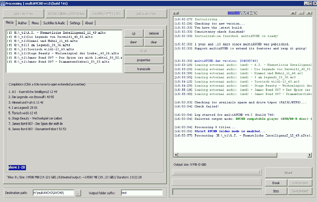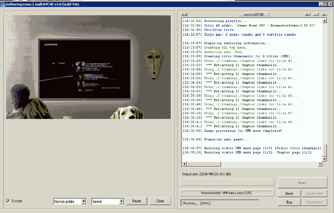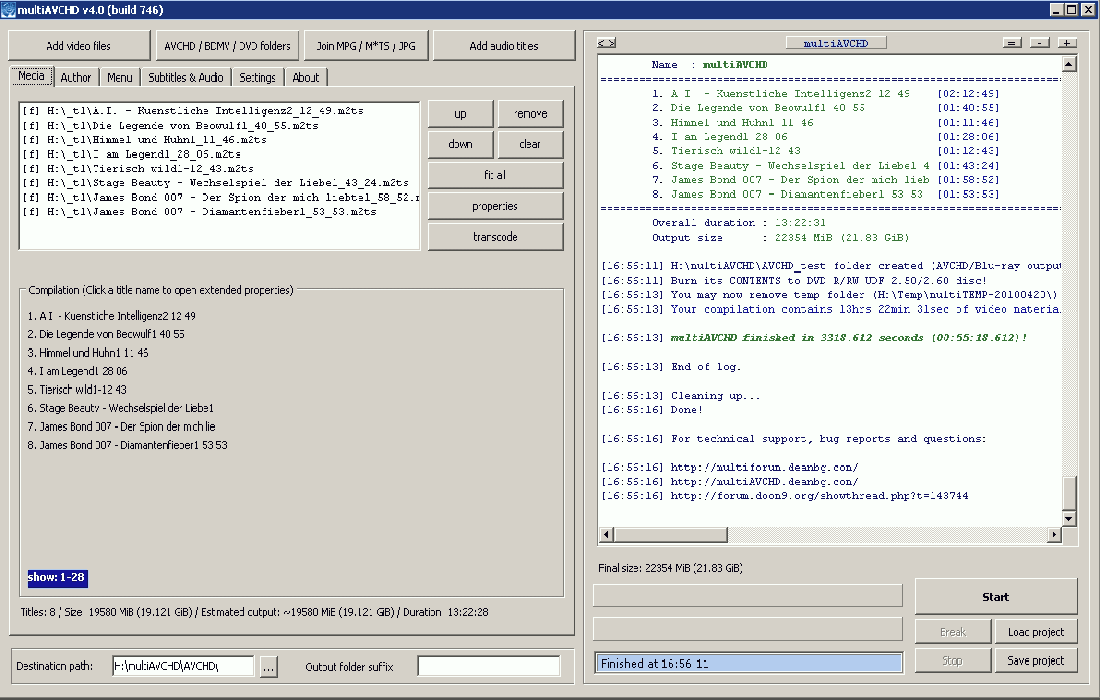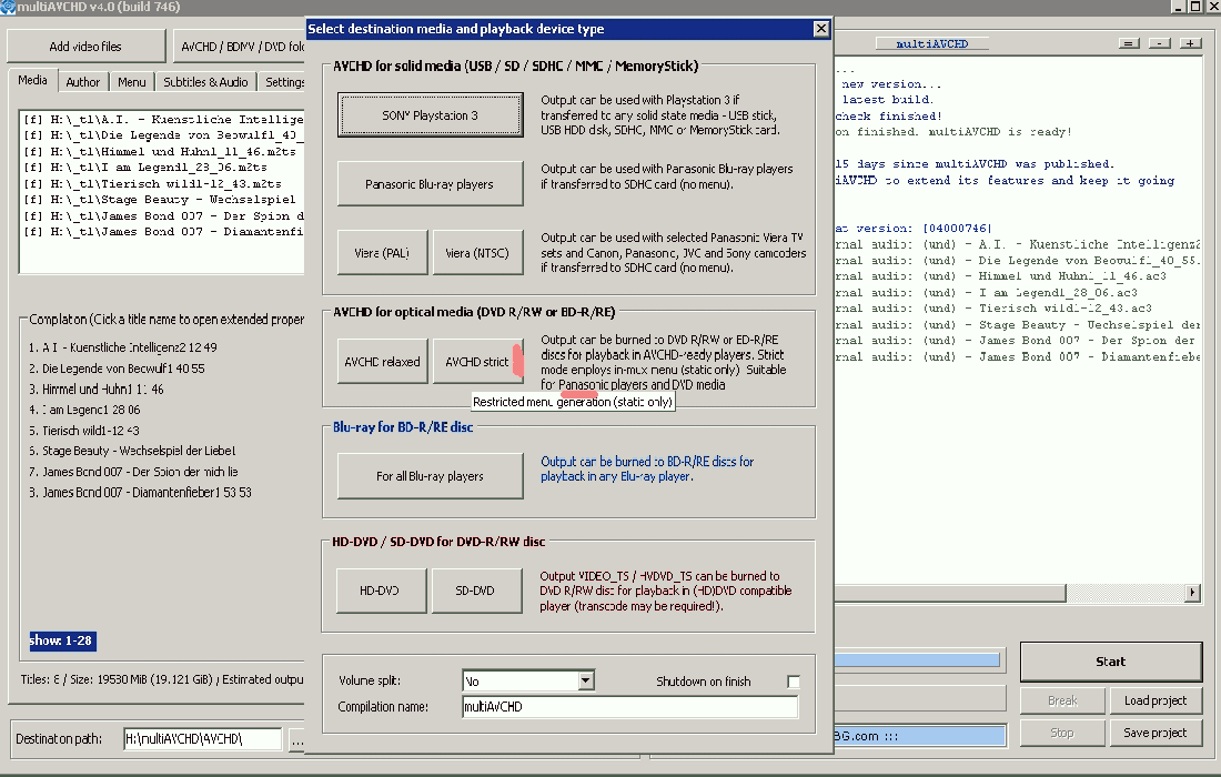 multiAVCHD reicht (Fehler-) Meldungen der im Hintergrund arbeitenden Softwaren, die die BD erstellen, durch.