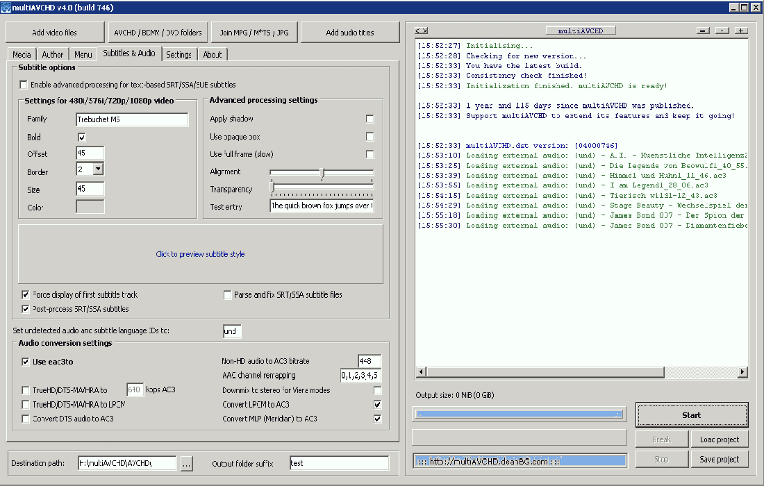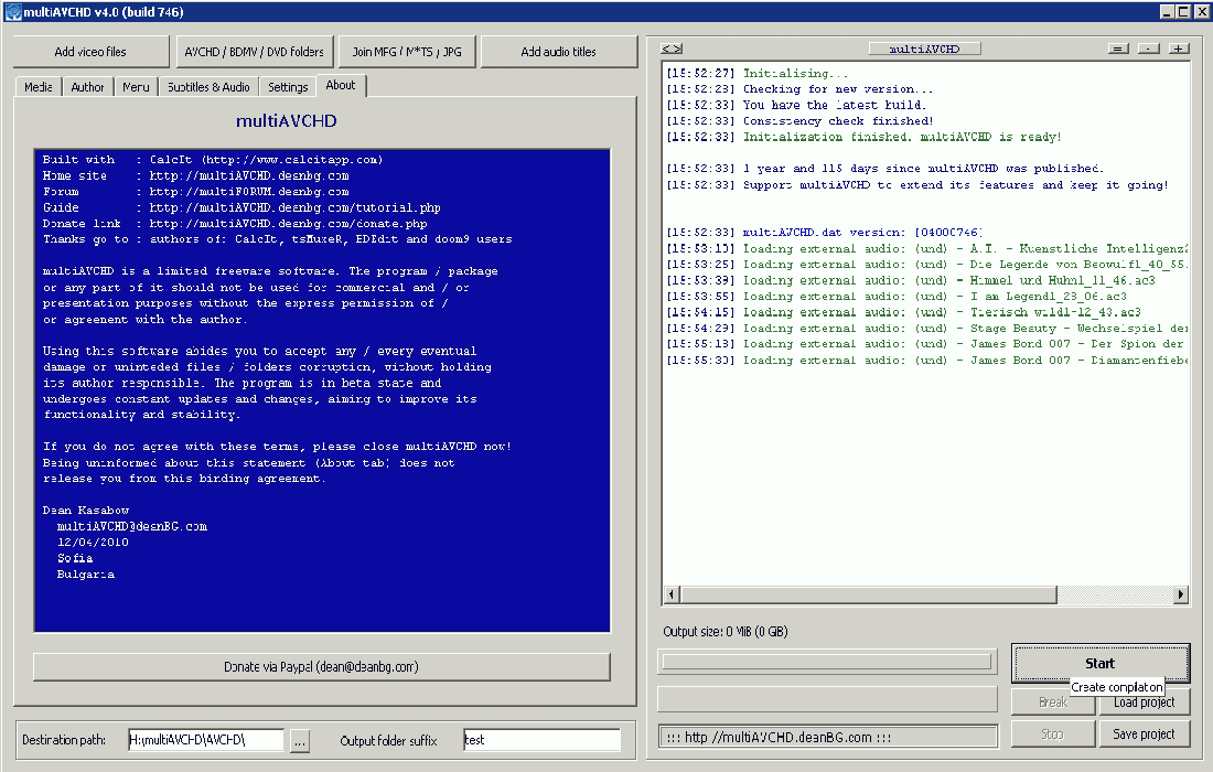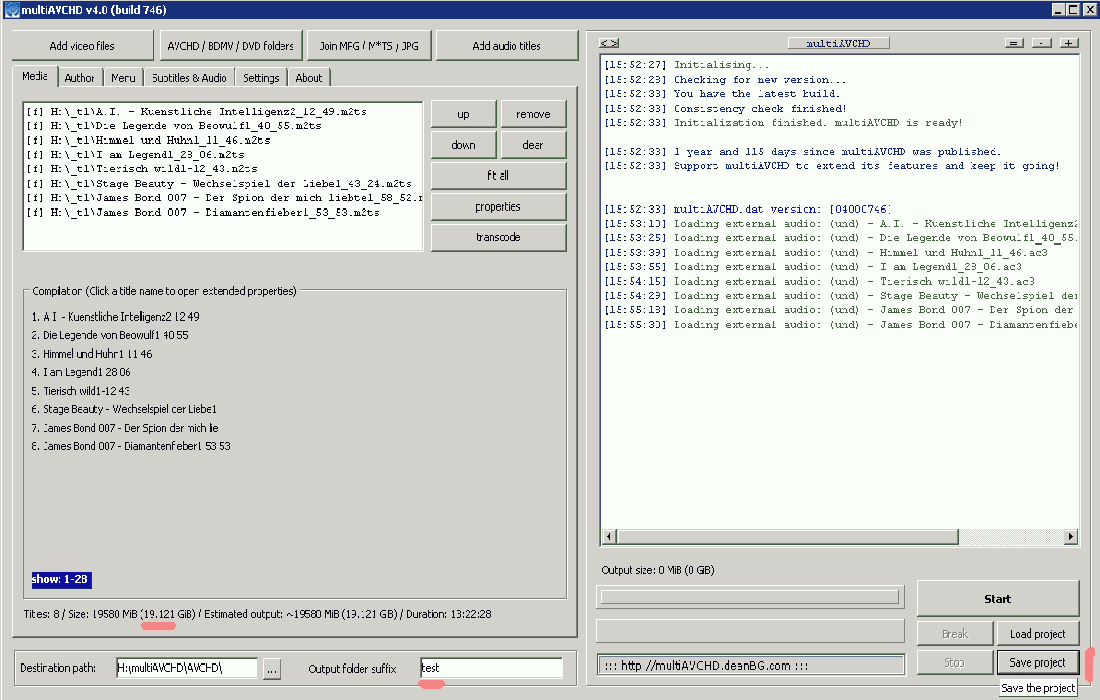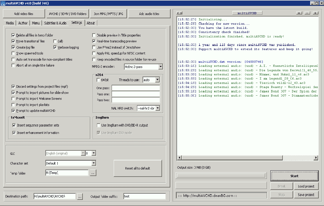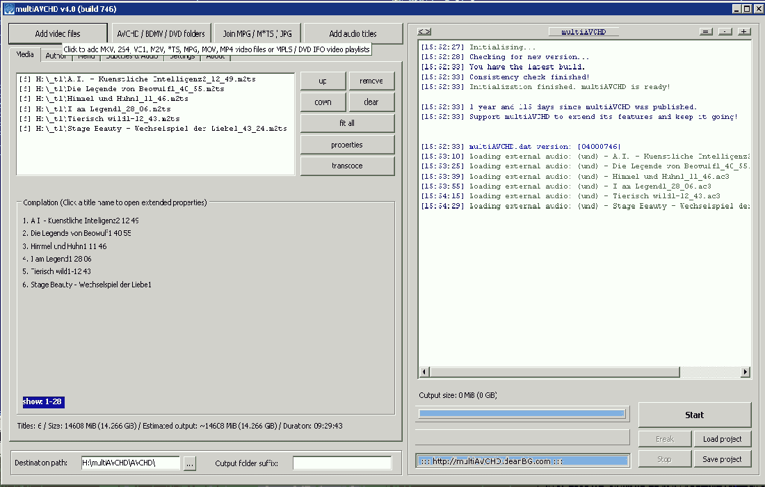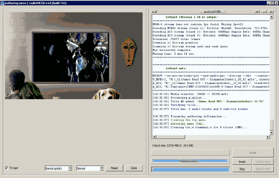 multiAVCHD reicht (Fehler-) Meldungen der im Hintergrund arbeitenden Softwaren, die die BD erstellen, durch.