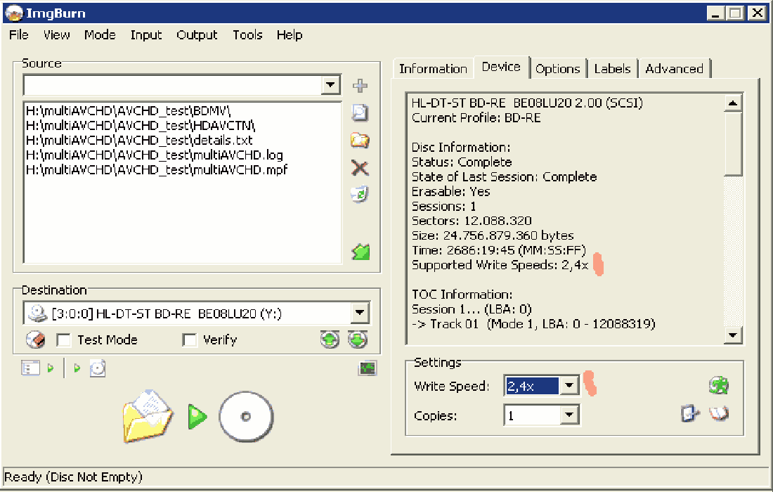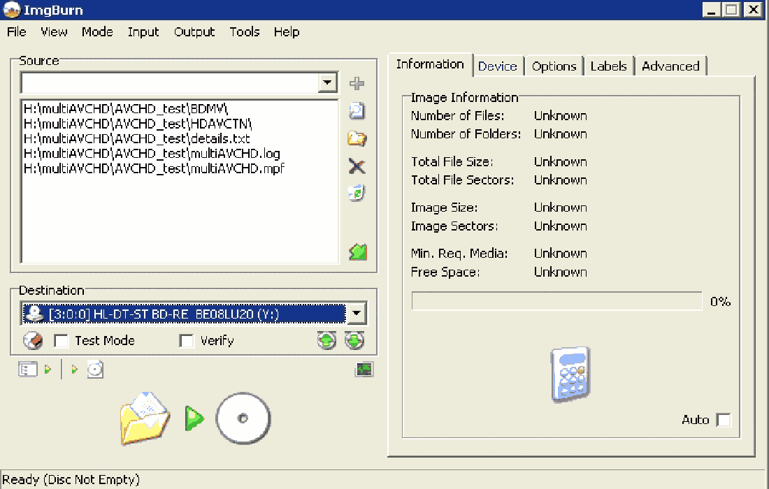 Die erzeugte BD brennen per ImgBurn - BD ist eine BD-RE und wird schnell-formatiert.