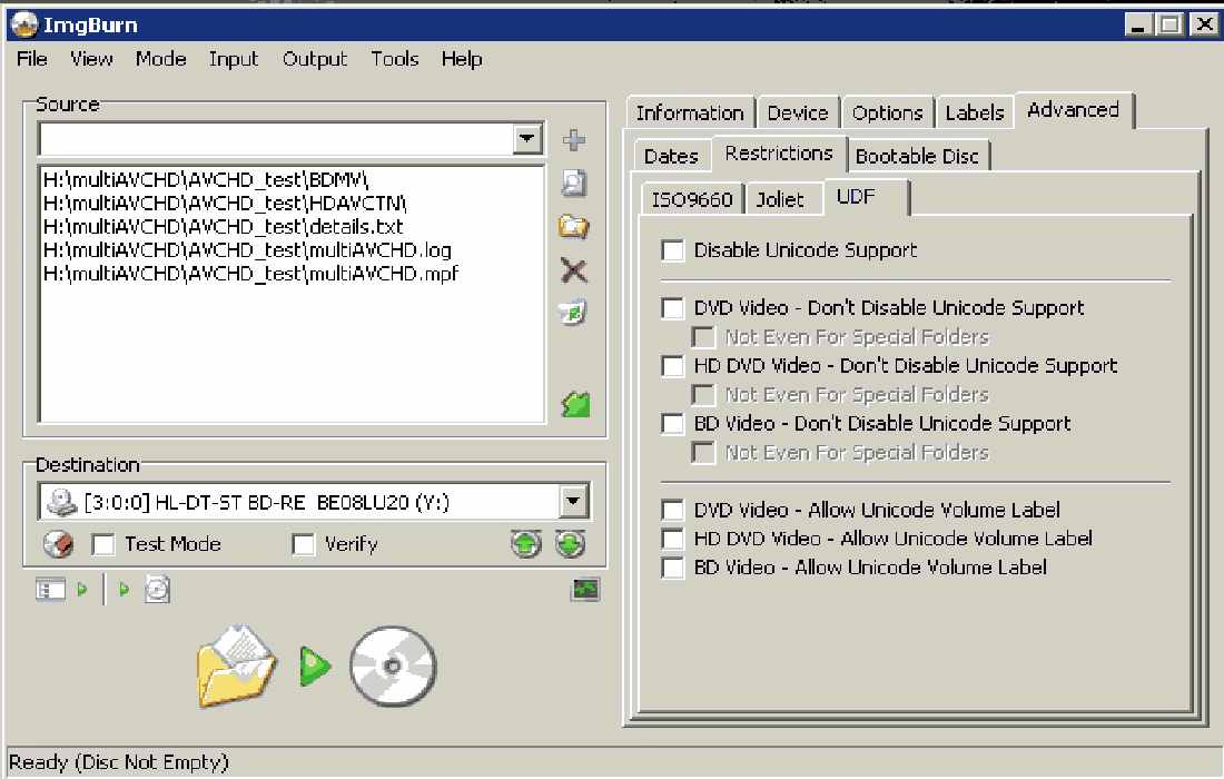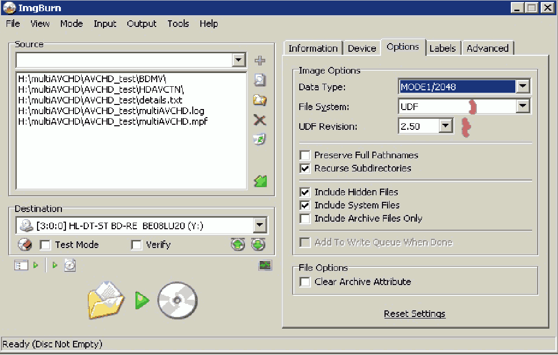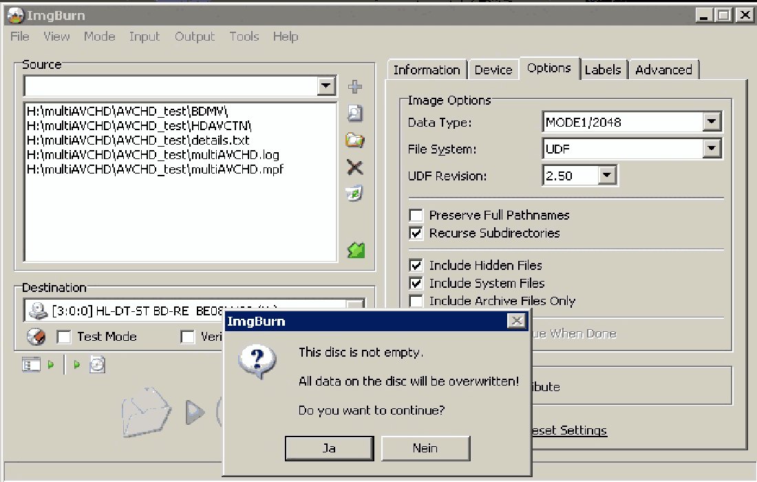 Die erzeugte BD brennen per ImgBurn - UDF 2.5 einstellen Teil 1