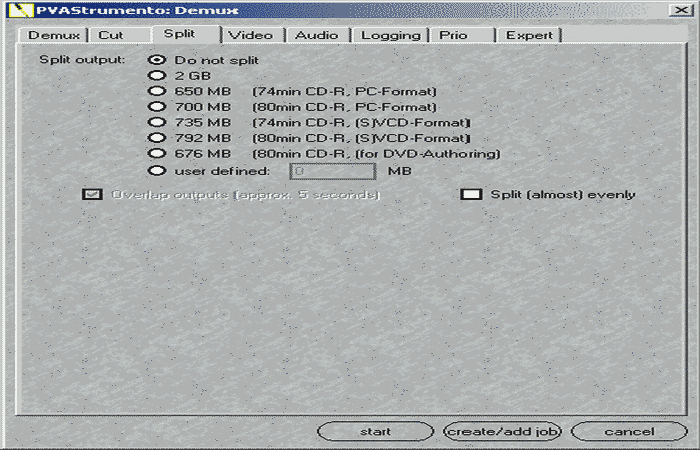 Für das Erstellen einer DVD muss sogar "Do not split" angepunktet sein, da das Compilieren der DVD