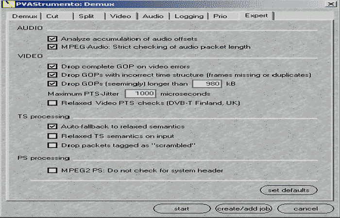 PVAStrumento (Freeware) - Videodaten zerlegen (demuxen), mit Fehlerkorrekturen