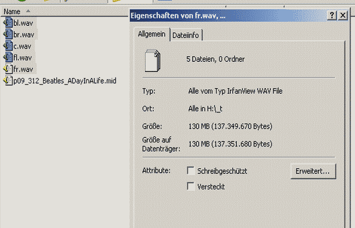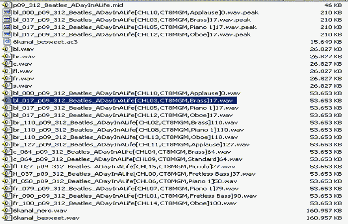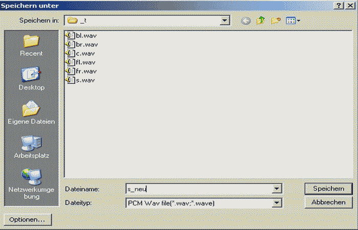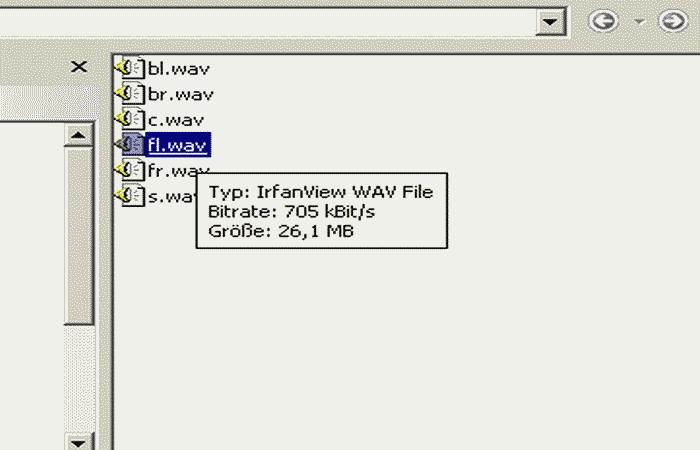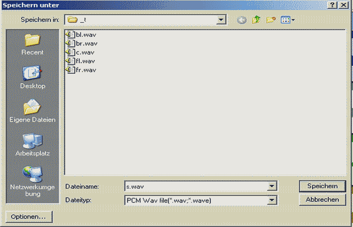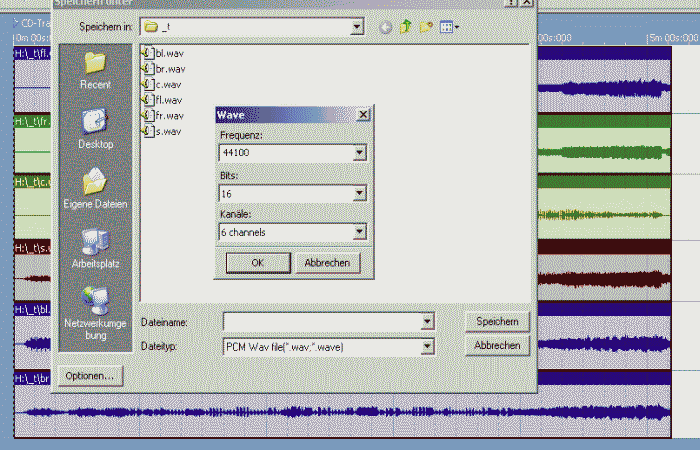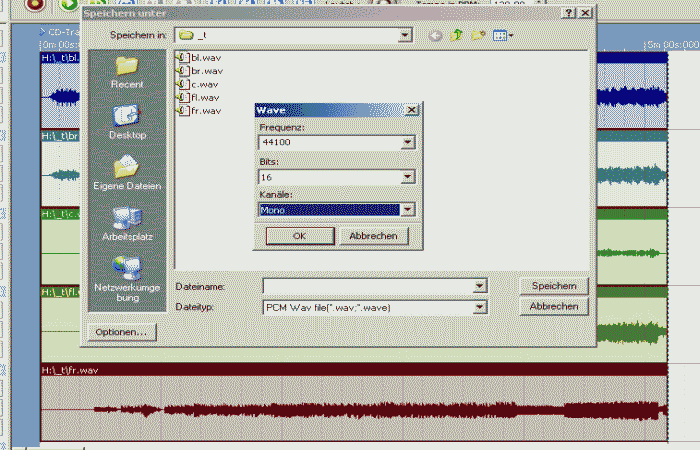 Erzeugung der anderen Mono-Wave-Dateien (br.wav, fl.wav, fr.wav und c.wav)