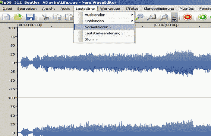 Die Stereo-Wave muss normalisiert werden (Ahead Nero WaveEditor (Payware))