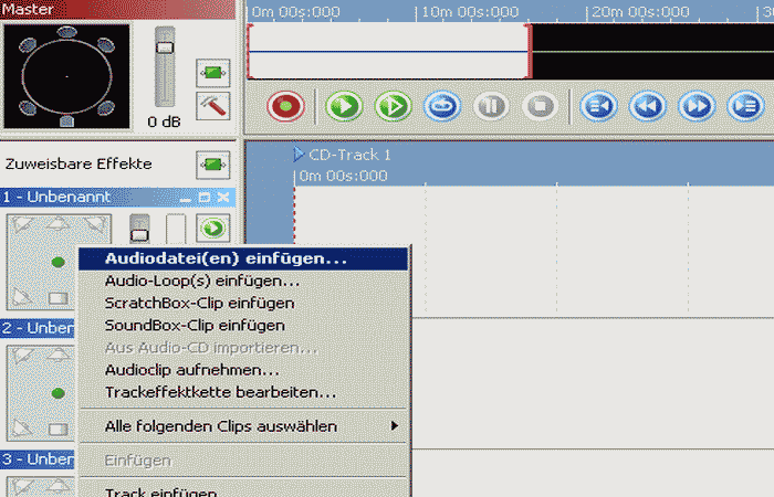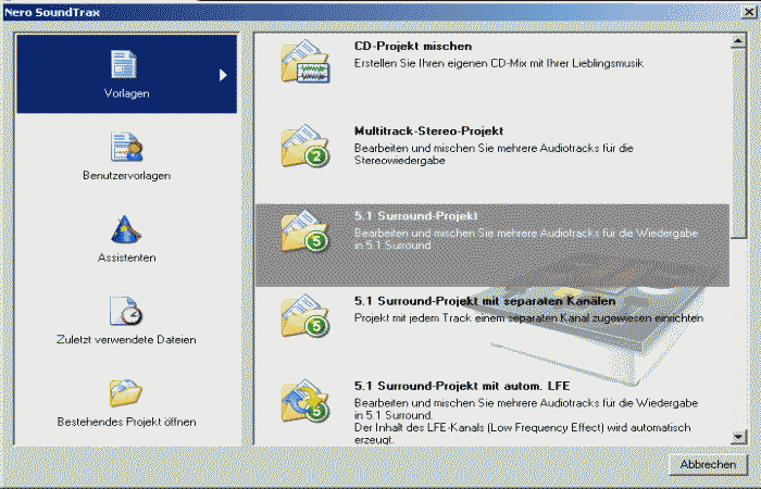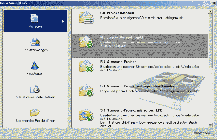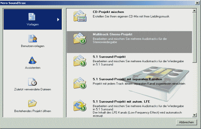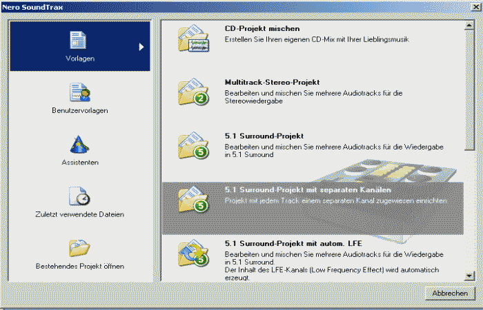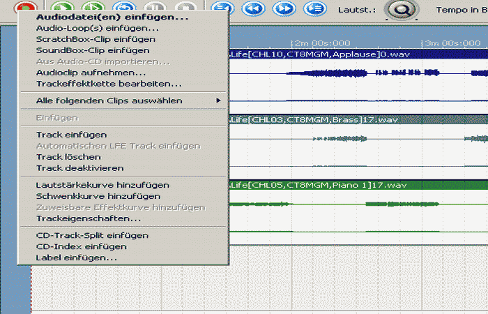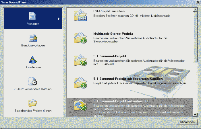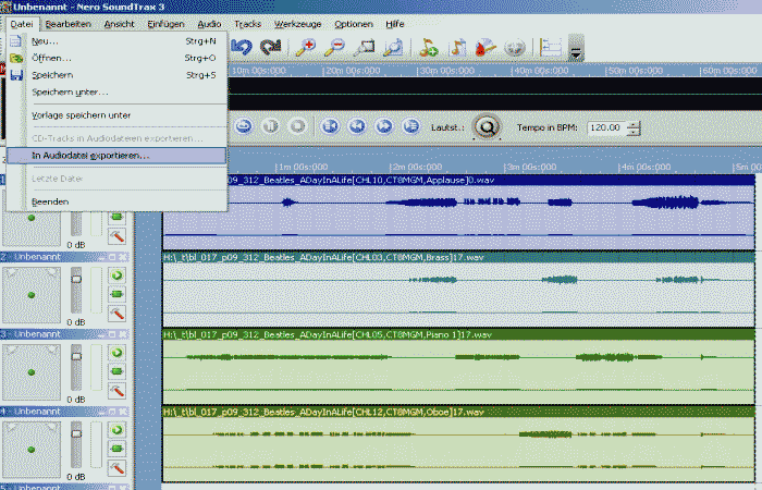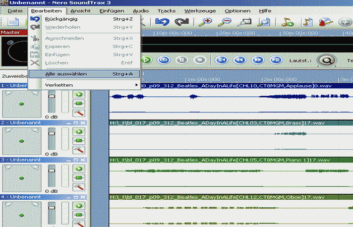 Die Erzeugung erfolgt beispielhaft mit Ahead Nero SoundTrax (Payware) und analog zur bl.wav.