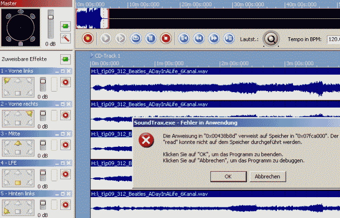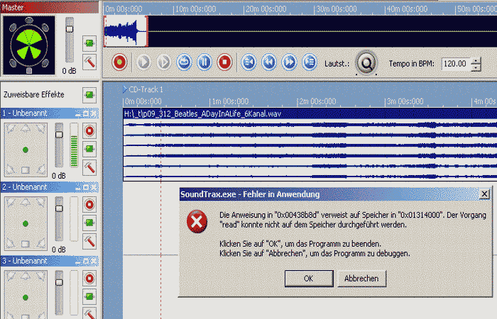 Adressfehler sobald Play der Wave-Datei aktiviert wird.