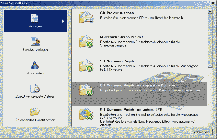 Die Stereo-Datei aus SynthFont wird mit Ahead Nero SoundTrax (Payware) verarbeitet.
