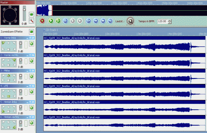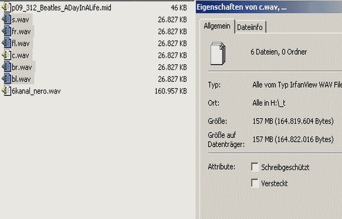 Bsp.: MIDI mit 16 Kanälen zu AC 3 5.1 per 6 Mono-Waves und BeSweet (Freeware)