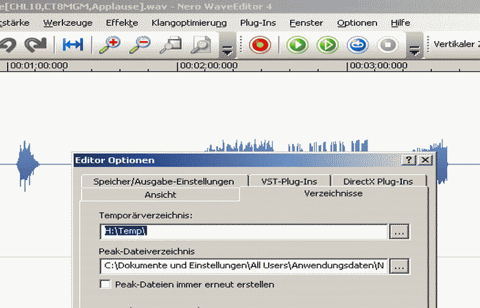 Es wird beispielhaft Ahead Nero WaveEditor (Payware) verwendet.