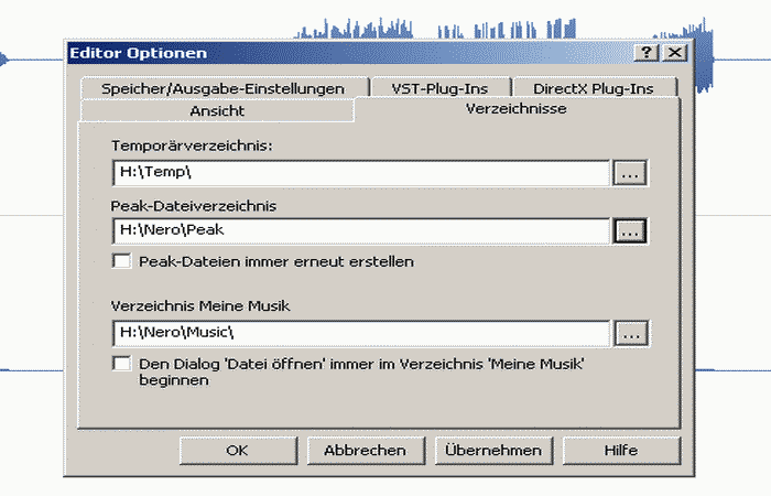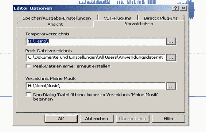 Hall einfügen etc.. Die Peak-Datei sollte also in unmittelbarer Nähe der zugeörigen Wave-Datei liegen.