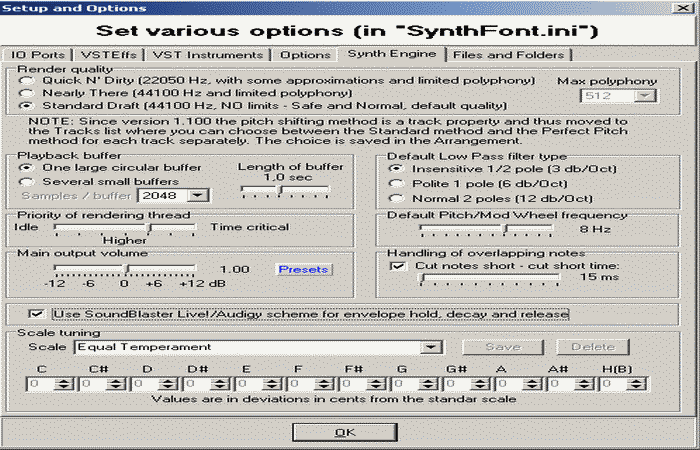 nutzt SoundFonts (SF-Bankendateien) für Erzeugung von Wave