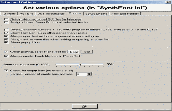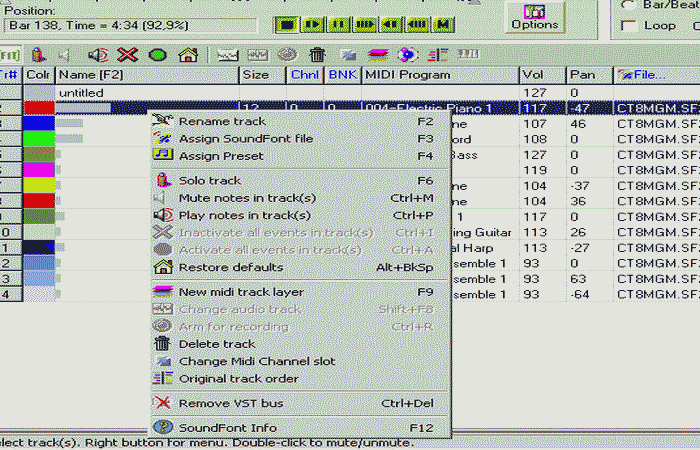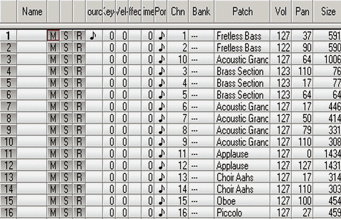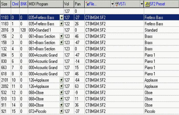 Die SF2-Datei muss alle 128-Instrumente enhalten, die in MIDI verfügbar sind (GM-MIDI), wenn nicht