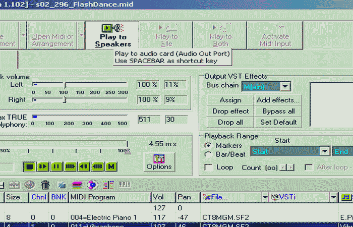 Achtung: MIDI-Wiedergabe mit oder ohne SynthFont erfolgt heutzutage immer per