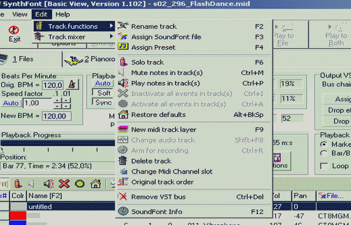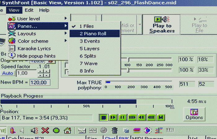 Tipp: Man spiele die MIDI-Datei einmal innerhalb SynthFont ab und einmal mit