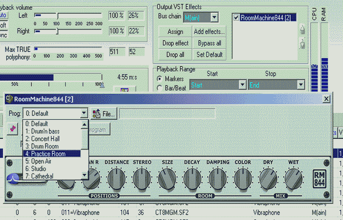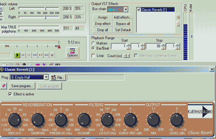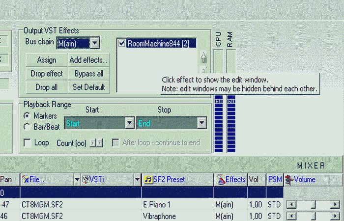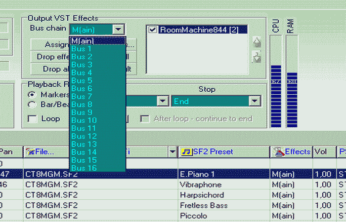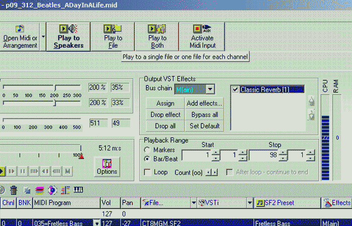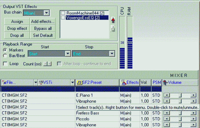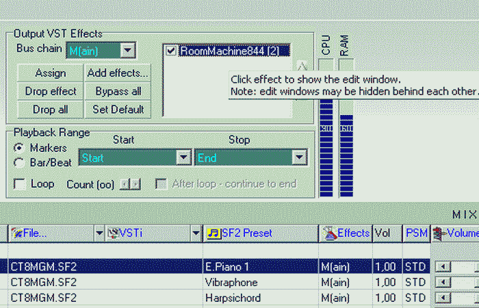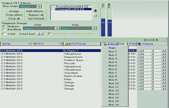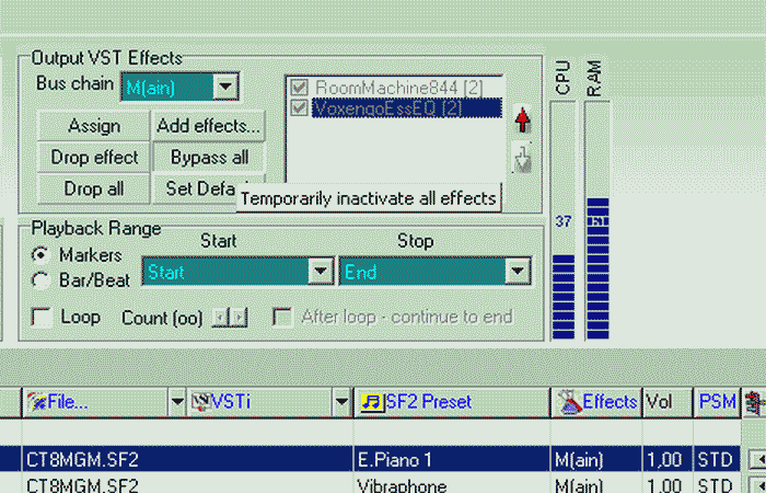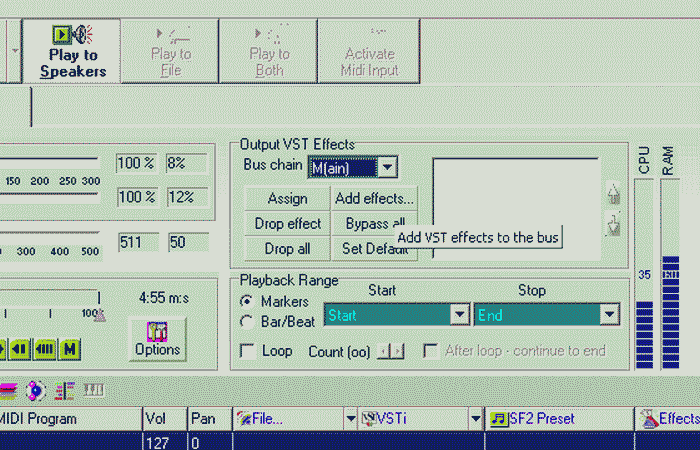 Bsp.: VST-Effekt während MIDI-Wiedergabe als "Output VST Effects" verwenden