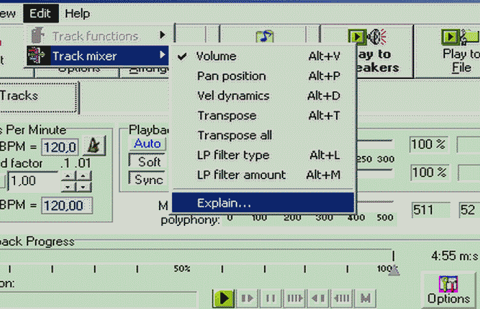 Trackdaten stammen z.T. aus der MIDI-Datei und sind die Steuerungsdaten für die Soundkarte,